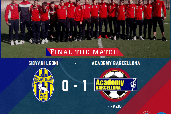 Dopo il bel gioco espresso fin qui, i ragazzi di Milone e Buccheri vengono finalmente premiati anche dai risultati. L’incontro ha visto l’Academy Barcellona partire subito forte e determinata, pur non riuscendo a scardinare il fortino avversario. Cosa che avviene invece al minuto 15 della ripresa con Samuele Fazio che trova la via del gol grazie a una forte e precisa conclusione da lontano. Così i rossoblù conquistano tre punti che fanno morale e danno fiducia al gruppo.